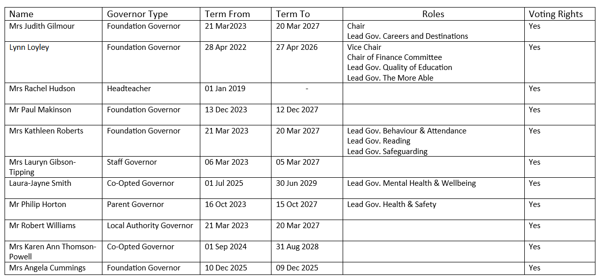 Blacon High School has the following Governors as set out in its Instrument of Government: